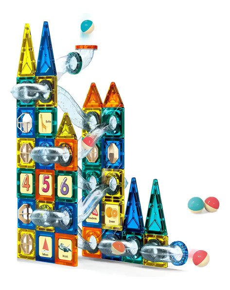 Set magnético con 97 piezas para construir figuras, estructuras y más. Desarrolla la lógica, creatividad y habilidades espaciales.